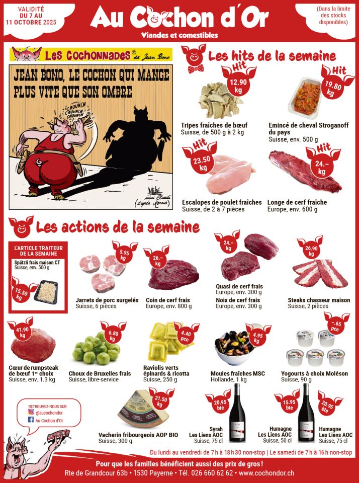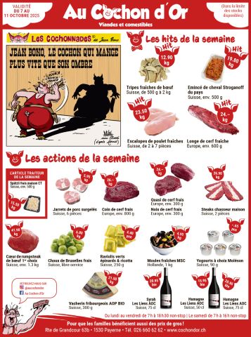 Ouvert à tous, le Cochon d'Or à la Route de Grandcour à Payerne vous offre un service de qualité. Boucherie, épicerie, fruits et légumes, cave ou encore traiteur à l'emporter, de tout pour tous !